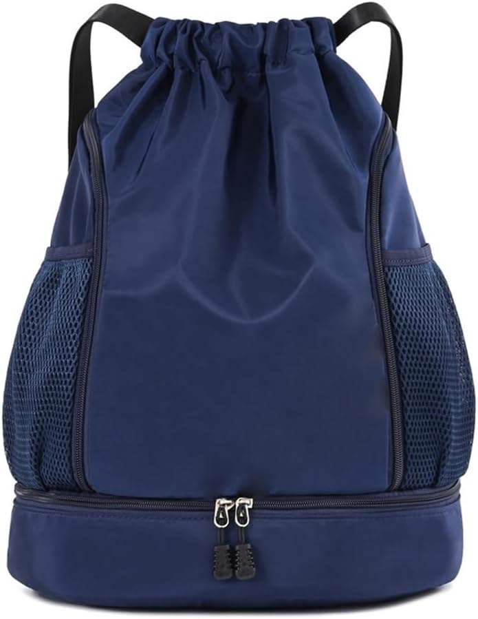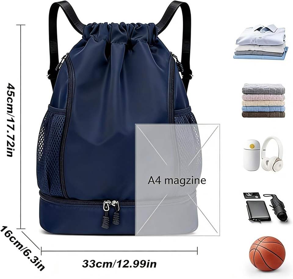 Drawstring Sports Backpack with Shoe Compartment Nylon Gym Bag Lightweight Foldable Backpack for Swimming Yoga Deep Blue