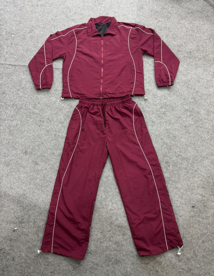 Drawstring Trouser and Zipper Jacket 100% Nylon Reflective Lines Water Proof Oversized Windbreaker Tracksuit For Men's