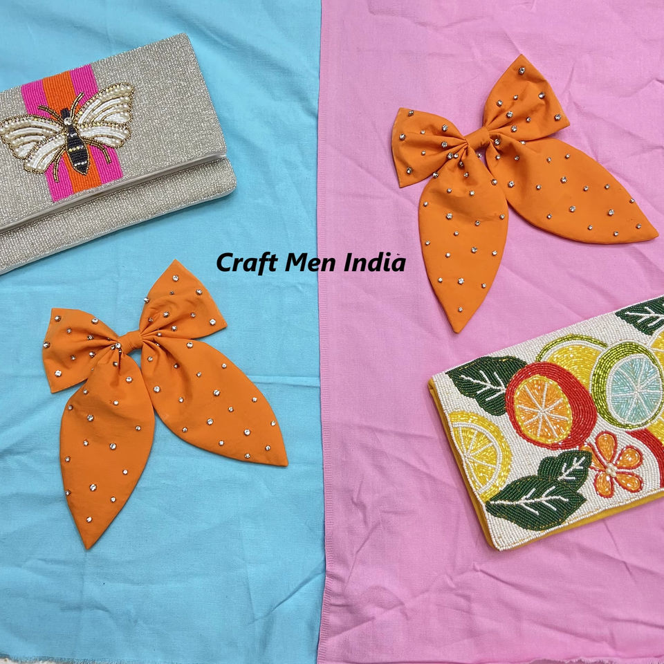 Dream Fashion Hot Selling Sporty French Style Bow Hair Accessories with Rhinestone Beaded Headbands Cotton Bows for Women