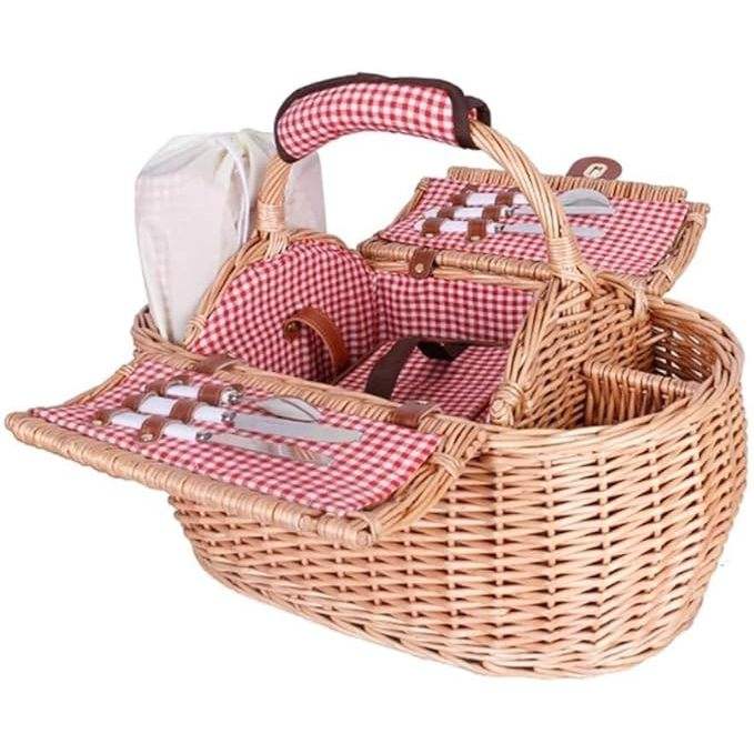DreamCraft Vietnam 2-Person Wicker Picnic Basket with Cutlery Set Storage Compartment & 53x28x22cm Picnic Mat for Outdoor Dining