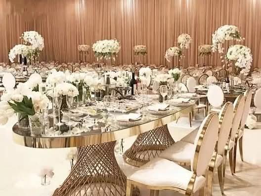 DreamLike Factory Modern Home Stainless Steel Gold Frame Dinning Table Set Furniture Luxury Dining Table Wedding Table