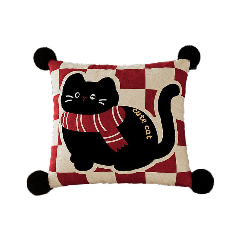 DreamMaker Kitten Pillow Square Removable Cover Cartoon Print Red Fleece Cushion Case With Insert