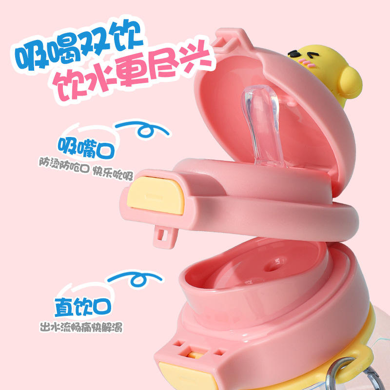 Dreams Exclusive Cartoon Straw Water Bottle 500Ml Reusable For Kids Students Outdoor Sports Gift Cup With Strap