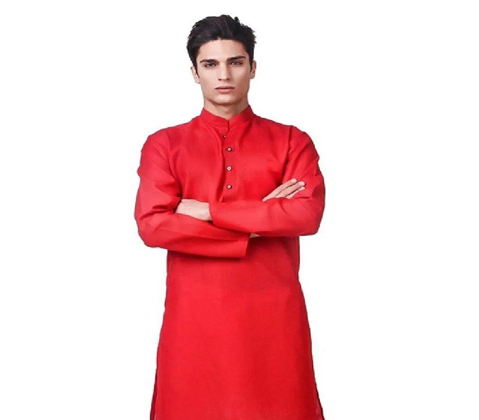 100% Cotton Traditional Ethnic Long Sleeve Kurta for Men Indian Casual Dress Top Plain Solid Fabric Indian Pakistani Clothing