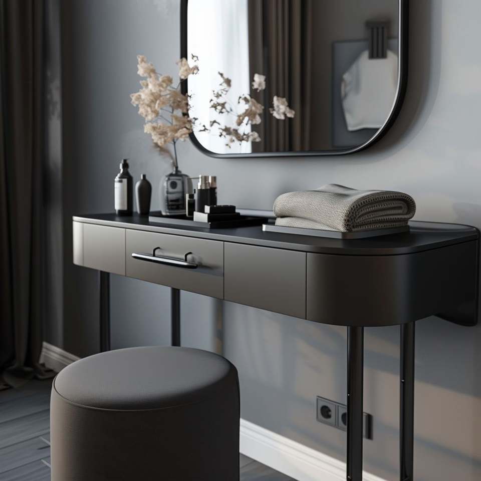 Modern European Standing Dressing Table Lighted Adjustable Mirror Storage Solid Wood Vanity Makeup Table for Bedroom Apartment