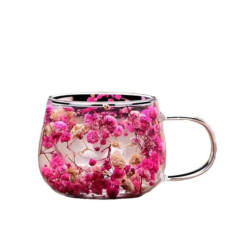 Dried flower double layer glass high appearance level with hand gift coffee cup high borosilicate simple cup