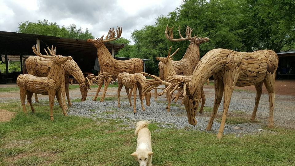 Driftwood Deer and Horse Sculptures Carved Engraved Freestanding Home Decor