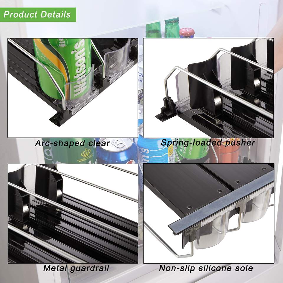 Drink Organizer for Fridge Self-Pushing Soda Can Dispenser for Refrigerator Width Adjustable Storage for Pantry Automatic