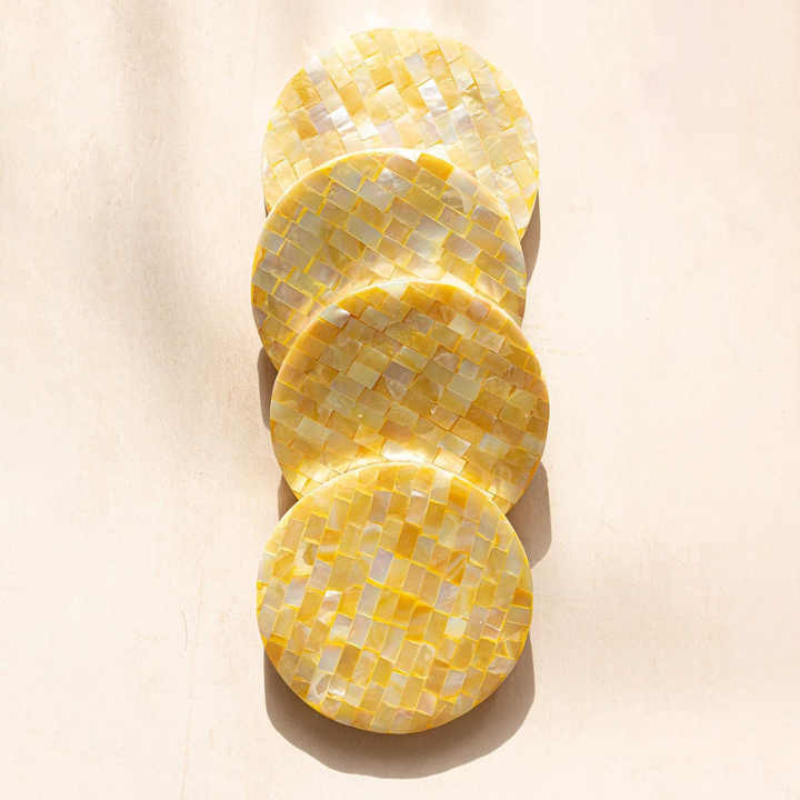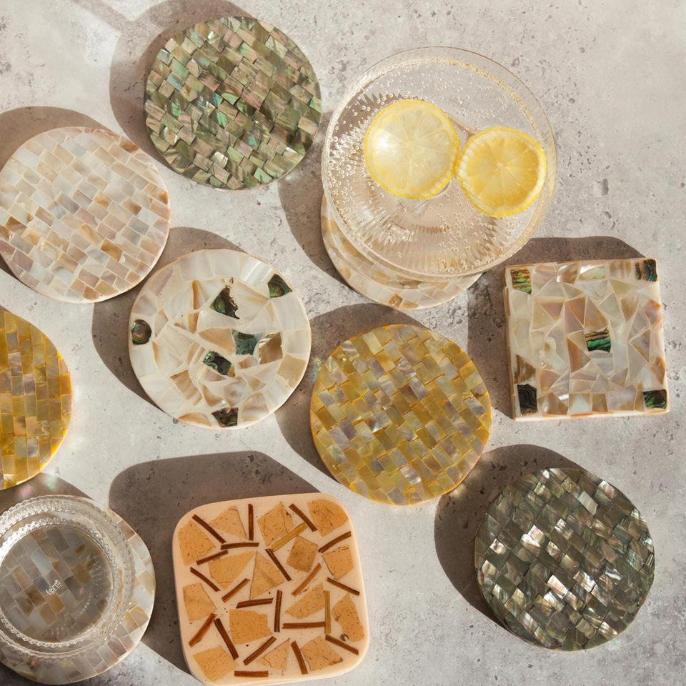 Drink coaster with mosaic shell inlay top-rated handcrafted MOP shells coasters table styling