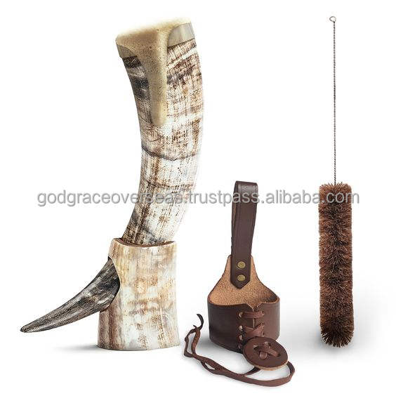 Handmade Medieval Beer & Wine Cup Stand Vintage Drinking Horn Mug Natural Agate Ox Religious Animal Style Polished Decoration