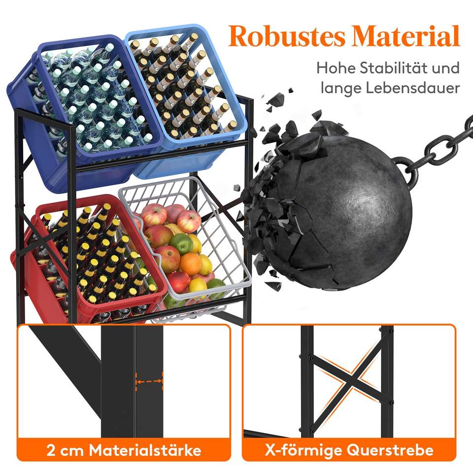 Drinks Crate Rack with Wheels for 4 Crates, Metal Drinks Shelf, Load Capacity 150 Kg/Layer,