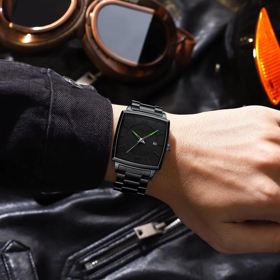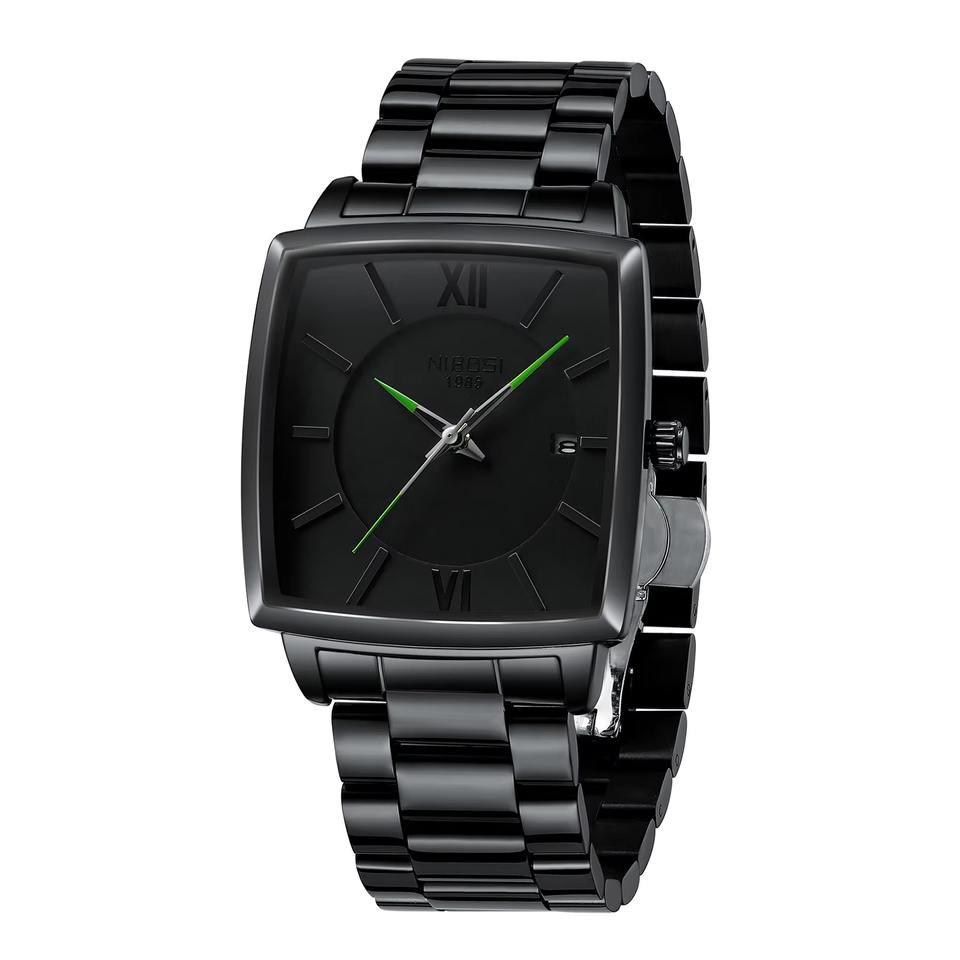 Drioshipping 2601 Men's Luxury Antiqued Business Quartz Watch Waterproof Square Stainless Steel Strap Luminous Wristwatches