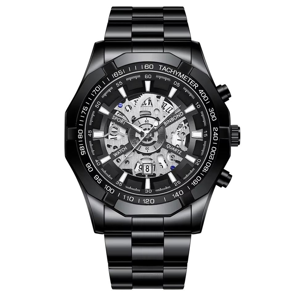 Drioshipping BINBOND Luxury Business Blue Wristwatch for Men Hollowed-Out Quartz Waterproof Calendar Clock Fashion Relogio