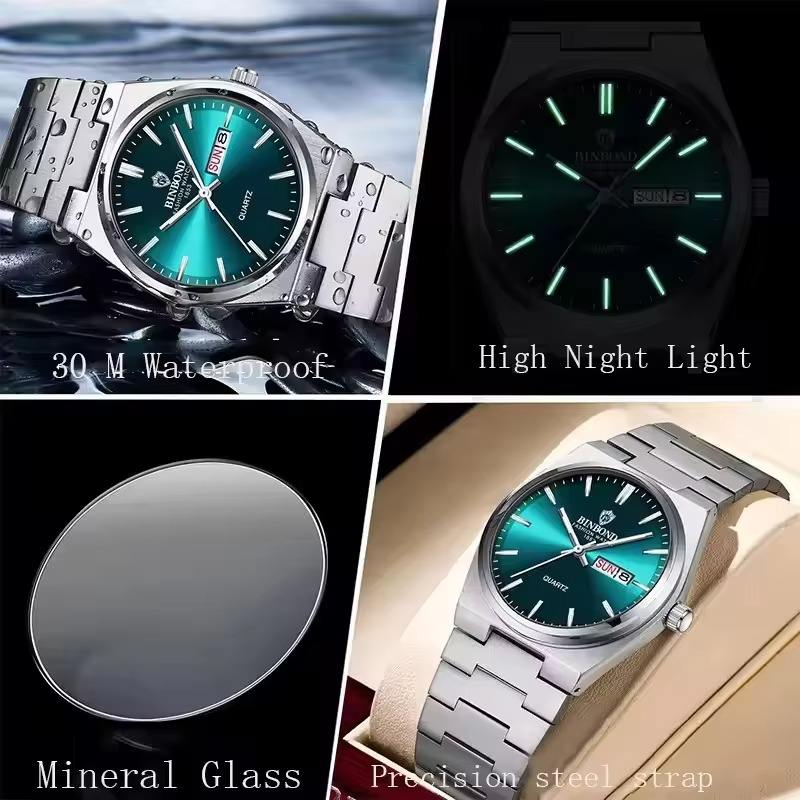 Drioshipping Fashion Quartz Wristwatches Waterproof Luminous Date Week Silver Clock Men Watch Casual Quartz Men's Reloj Hombre
