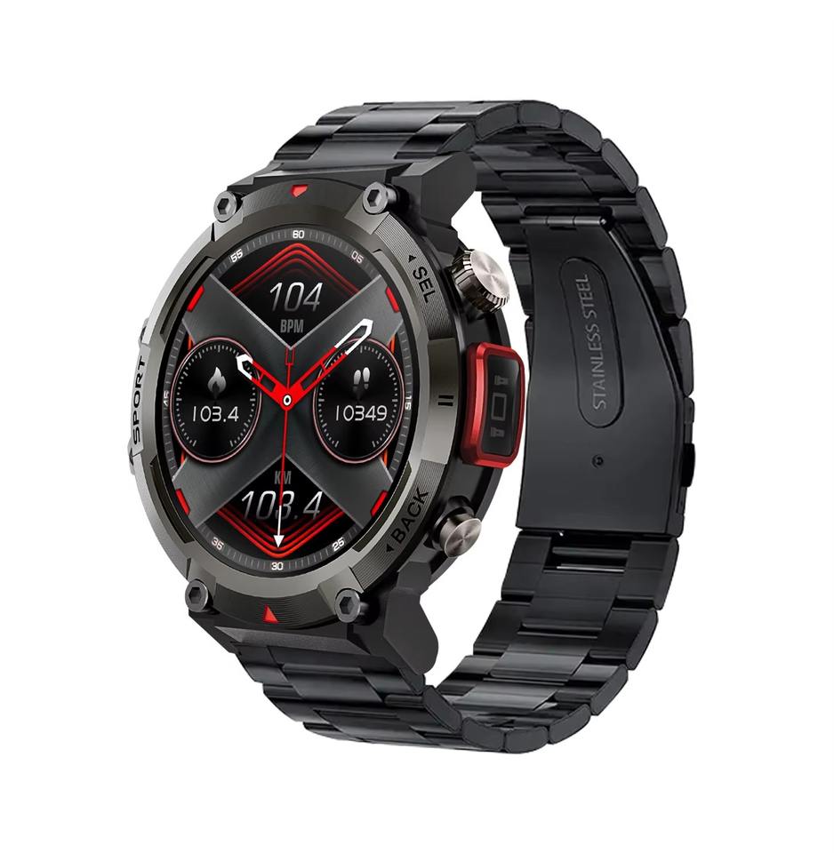 Drioshipping Stainless Steel Sports Smart Watch 1.45inch TFT IP67 Health Monitoring BT Calling Heart Design Sleep Silica Gel