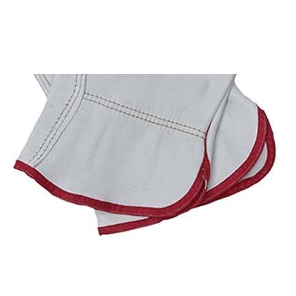 Driver Work Gloves Made of Natural White Goat Grain Leather Keystone Thumb Red Cotton Piping on Hem