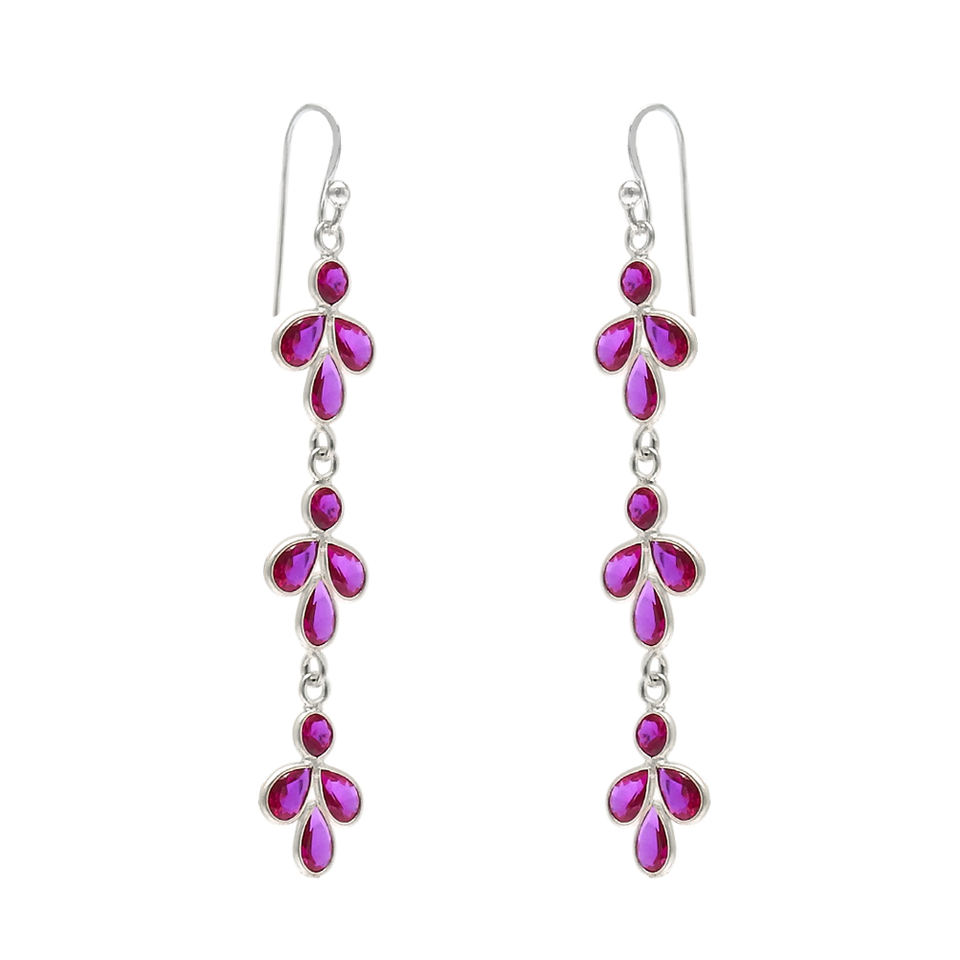 Drop Cut Bezel Set Ruby Cubic Zirconia Long Dangle 925 Sterling Silver Statement Trendy Design Dangle Earring Jewelry for Women