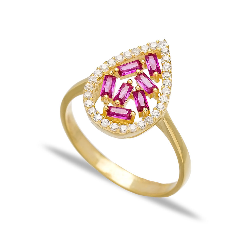 Drop Design Ruby Baguette Stone Turkish Rings Wholesale Handmade 925 Sterling Silver Jewelry for Women