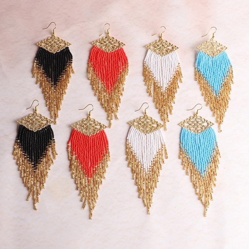Drop Earrings Hand-Woven Gold White Black Red Fringe Pendant Earrings for Women Jewelry Wholesale by MD HANDICRAFTS