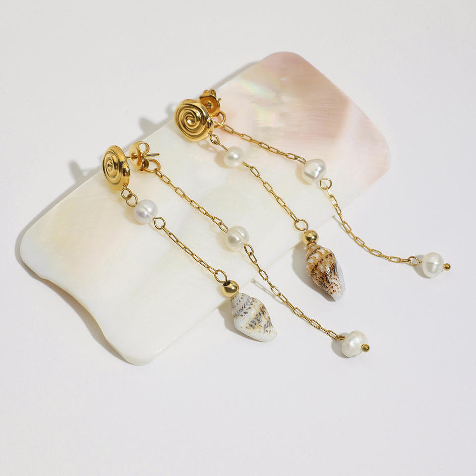 Drop Earrings With Pearl And Shell Beads Gold Plated Chain Long Dangle Party Jewelry