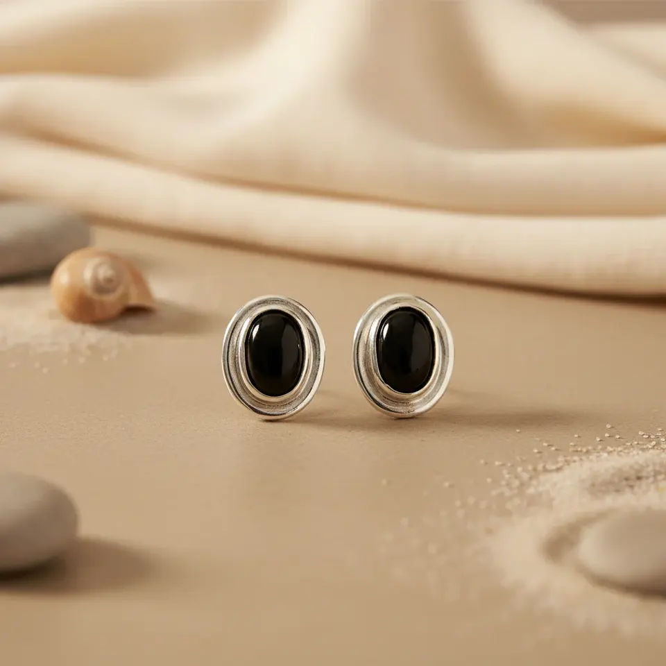 "Drop Earrings with Black Onyx Stone for Women Trendy Gold Plated 18K Gold"