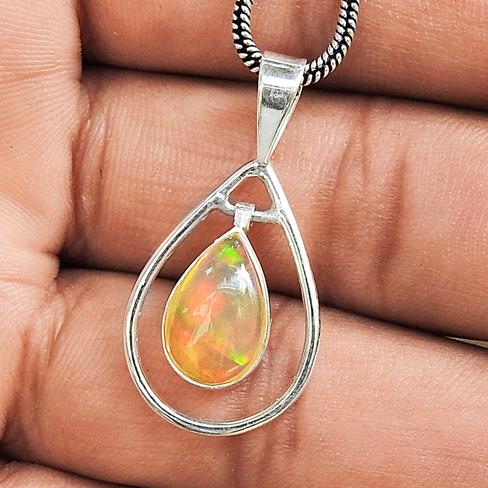 Drop Opal Rainbow Fire Pendant Natural Gemstone 925 Sterling Silver Handmade for Jewelry Making Necklace Wholesaler Manufacturer