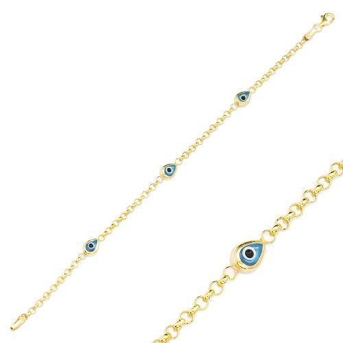 Drop Shape Eye Design Charm Thin Bracelet Turkish Wholesale Handmade 925 Sterling Silver Jewelry