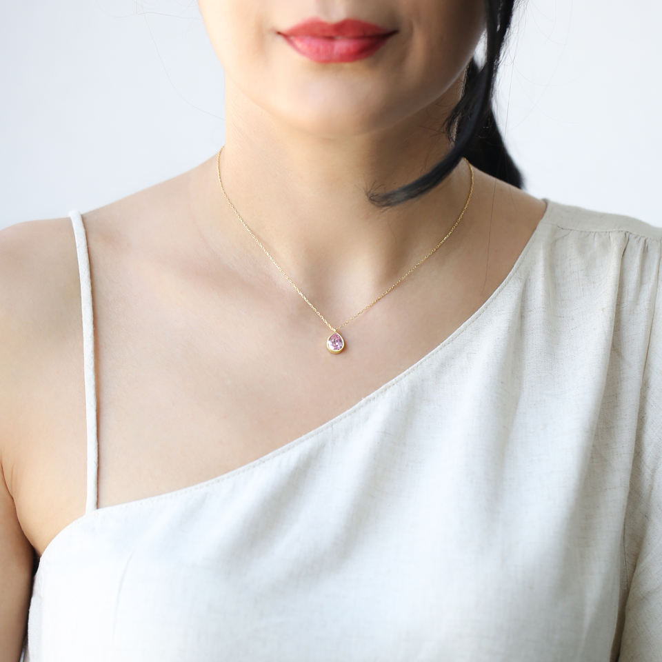Drop Shape Pink Quartz Stone Minimalist Design Turkish Wholesale Handmade 925 Silver Sterling Necklace