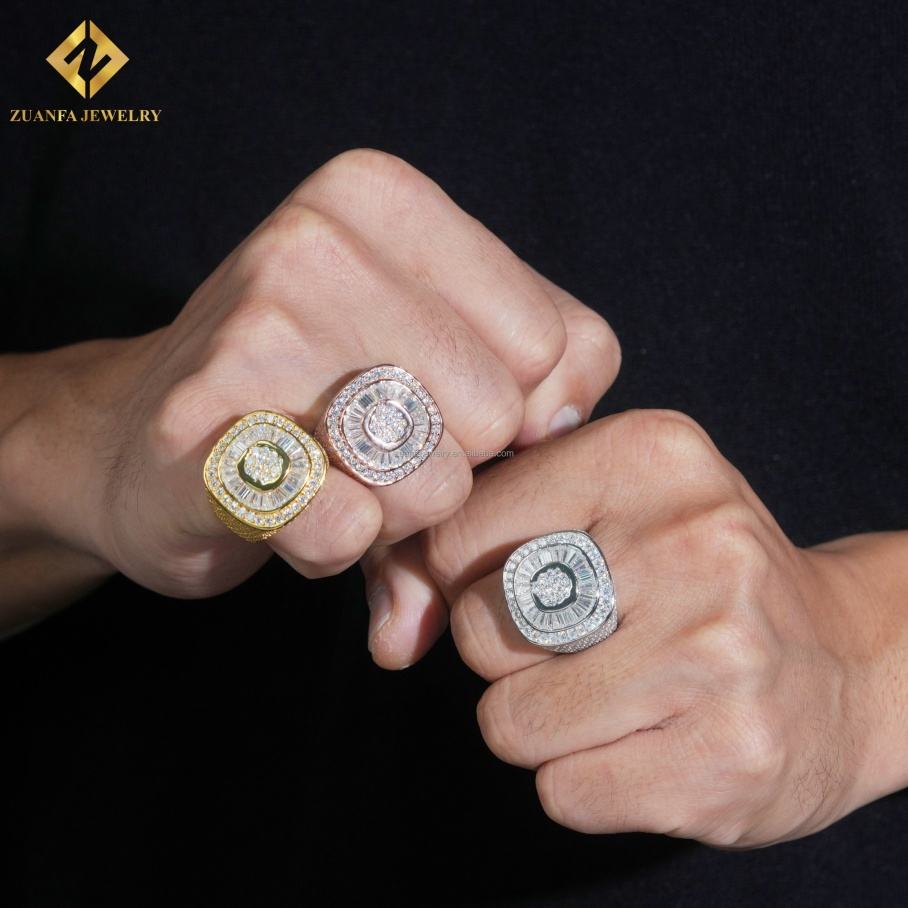 Drop Shipping Fire Jewelry Man 925 Solid Silver Hip Hop Luxury Iced Out Jewelry FL Moissanite Diamond Man Square Ring With GRA