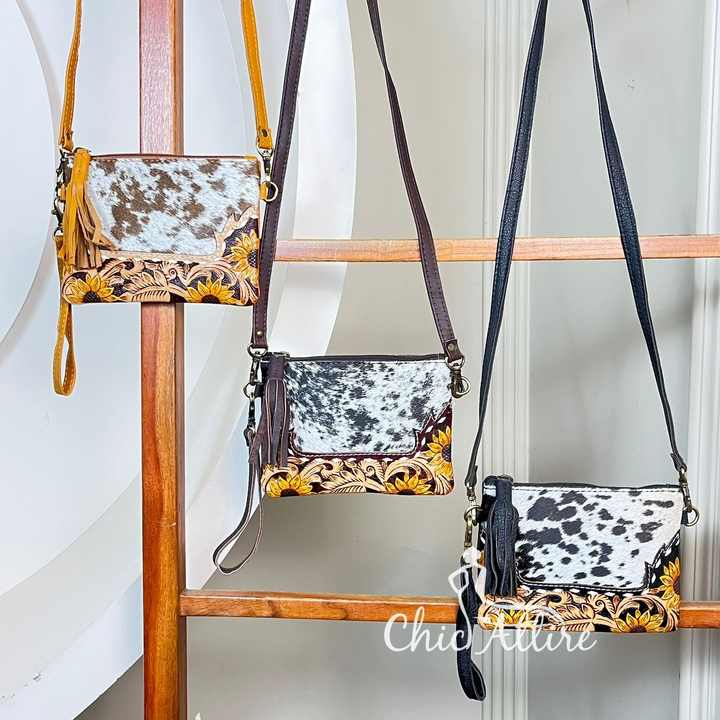 Product name:Hand Tooled Leather Wristlet Crossbody Tassel Pouch