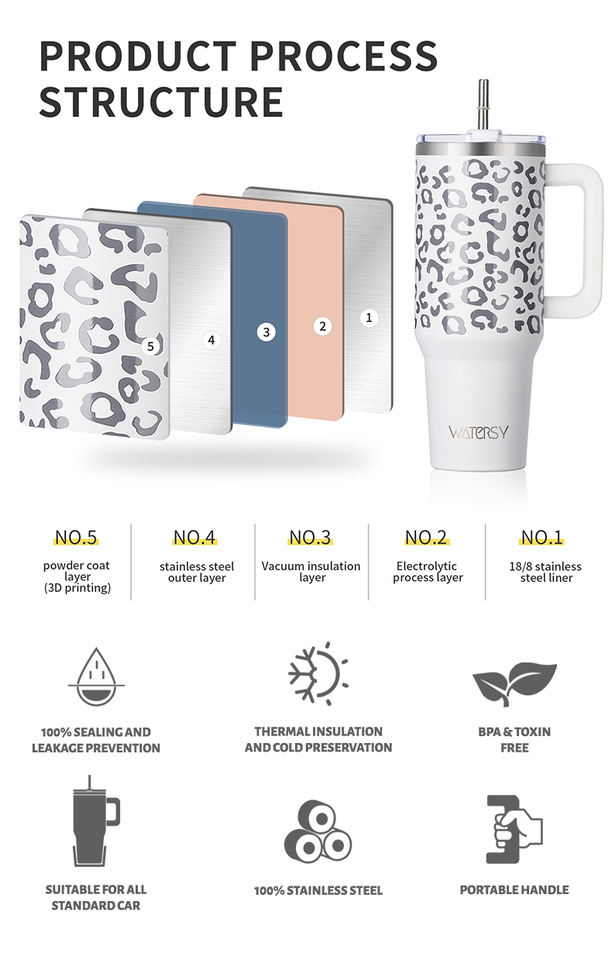 Drop Shipping Powder Coated 40oz Stainless Steel Vacuum Insulated Tumbler with Lid 30oz Pink Leopard Print Tumbler With Handle