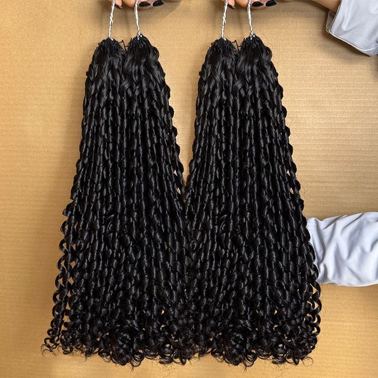 Drop Shipping Pre-looped Hair Pixie Curly Double Drawn Feathers Crochet Human Hair Raw Virgin Hair Extensions