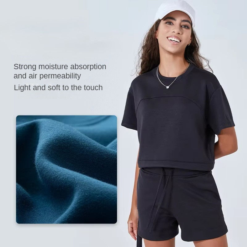 Drop Shoulder 2 piece set joggers pants Sweatshirt With Sweatpants,Blank Hoodies oversized clothes For Women Seamless Yoga Short