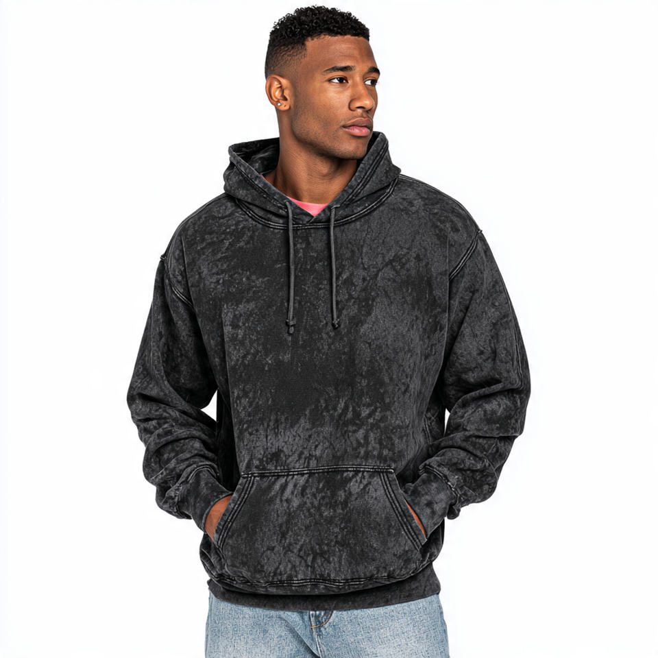 Keywords:Stone Wash Drop Shoulder Hoodie Men's