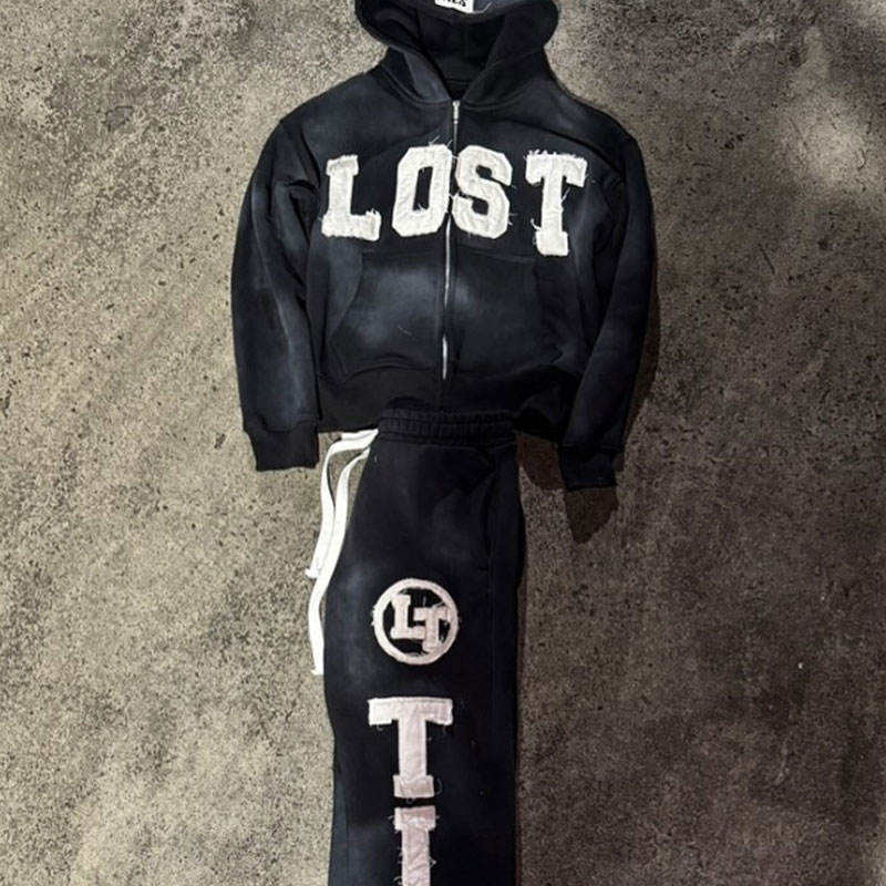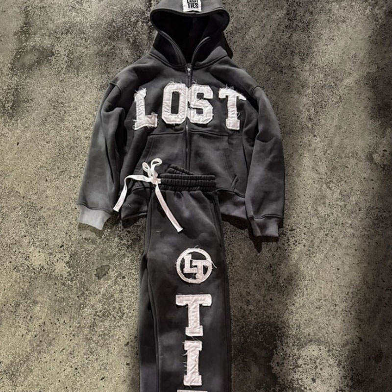 Drop Shoulder Pure Cotton Winter Streetwear Heavyweight 420g Fleece Solid Hoodie Embroidery Applique 3D Flared Custom Sweat Suit