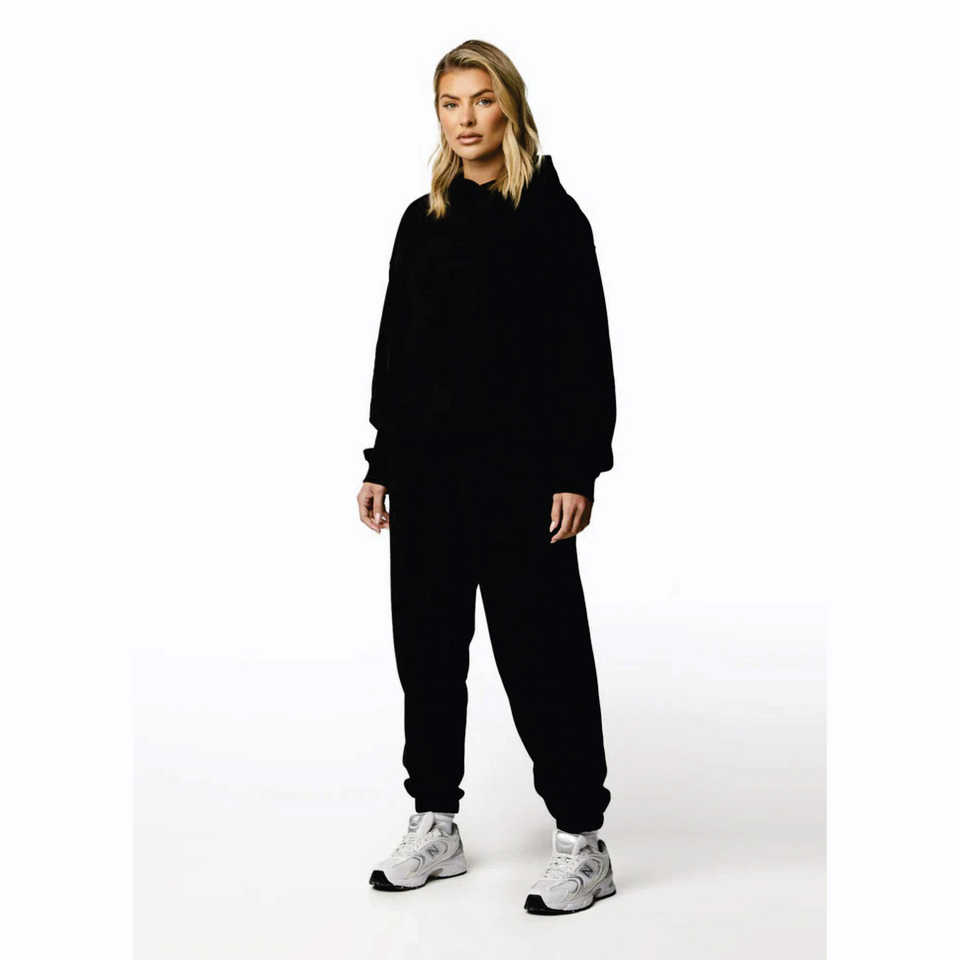 Drop Shoulder Relaxed Fit 100% Cotton Established Relaxed Fit Hood Black Women's Pullover Hoodie