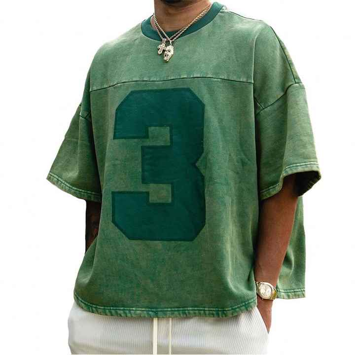 Drop Shoulder Streetwear Boxy Oversized Vintage Heavyweight Cotton Acid Wash Print Plus Size Men T Shirt