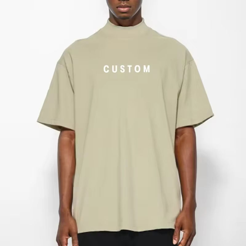 Dropped Shoulder Boxy Cotton Blank Wholesale High Mock Neck 300 Gsm Oversized Bulk Tshirts Custom Design Men Tshirt