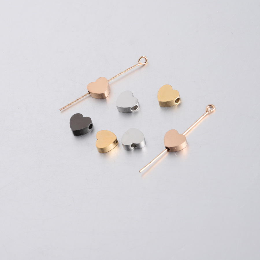 Dropshipping 18K Gold Plated Stainless Steel Peach Heart Beaded Charm DIY Necklace Jewelry with Bezel Setting Technology
