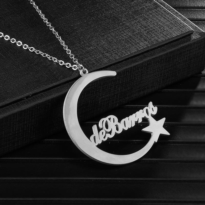 Dropshipping Custom Stainless Steel Star Moon Name Necklace Personalized Silver Gold Plated Nameplate Necklace for Women Girls