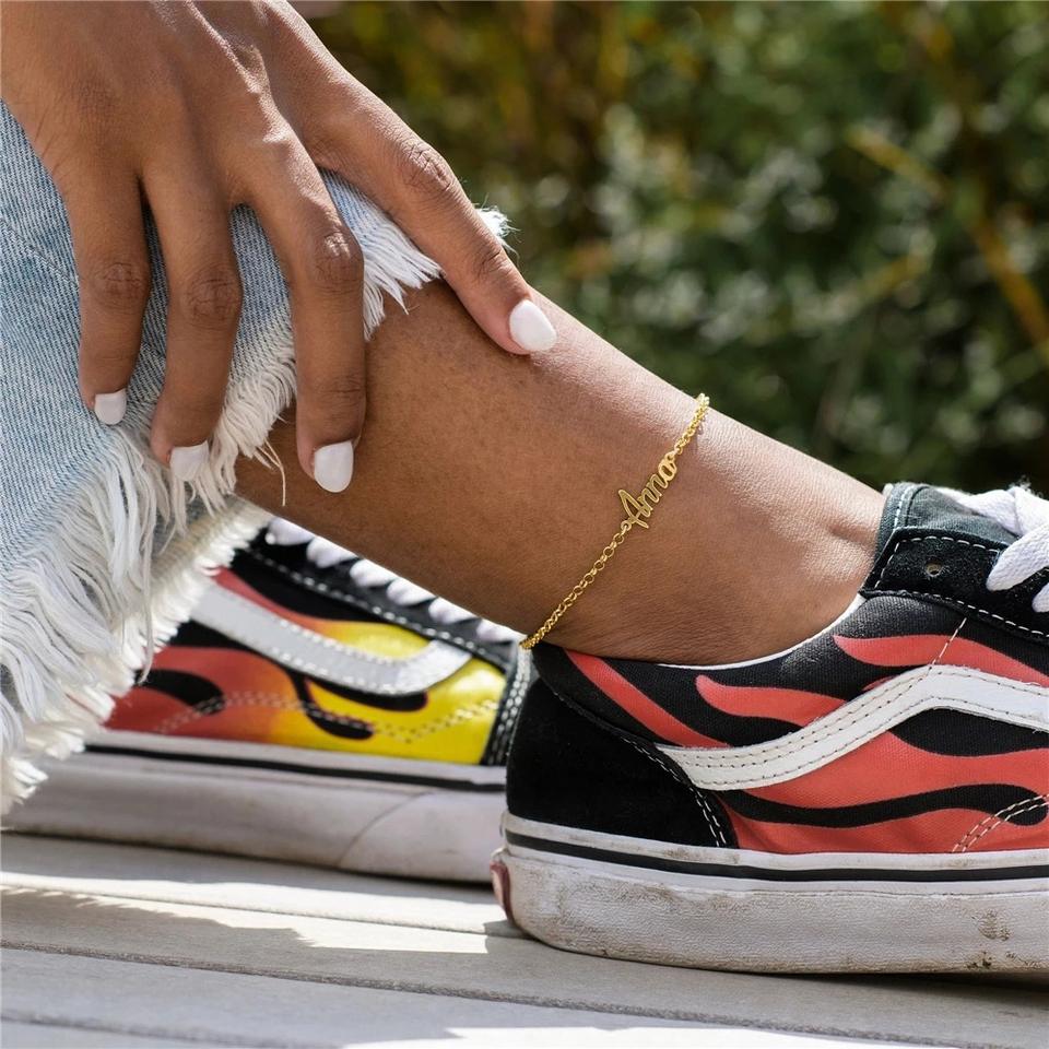 Dropshipping Customized Stainless Steel Women's Anklets Gold Silver Rose Gold Initials Name Plate Trendy Personalized Party