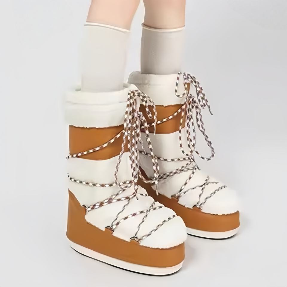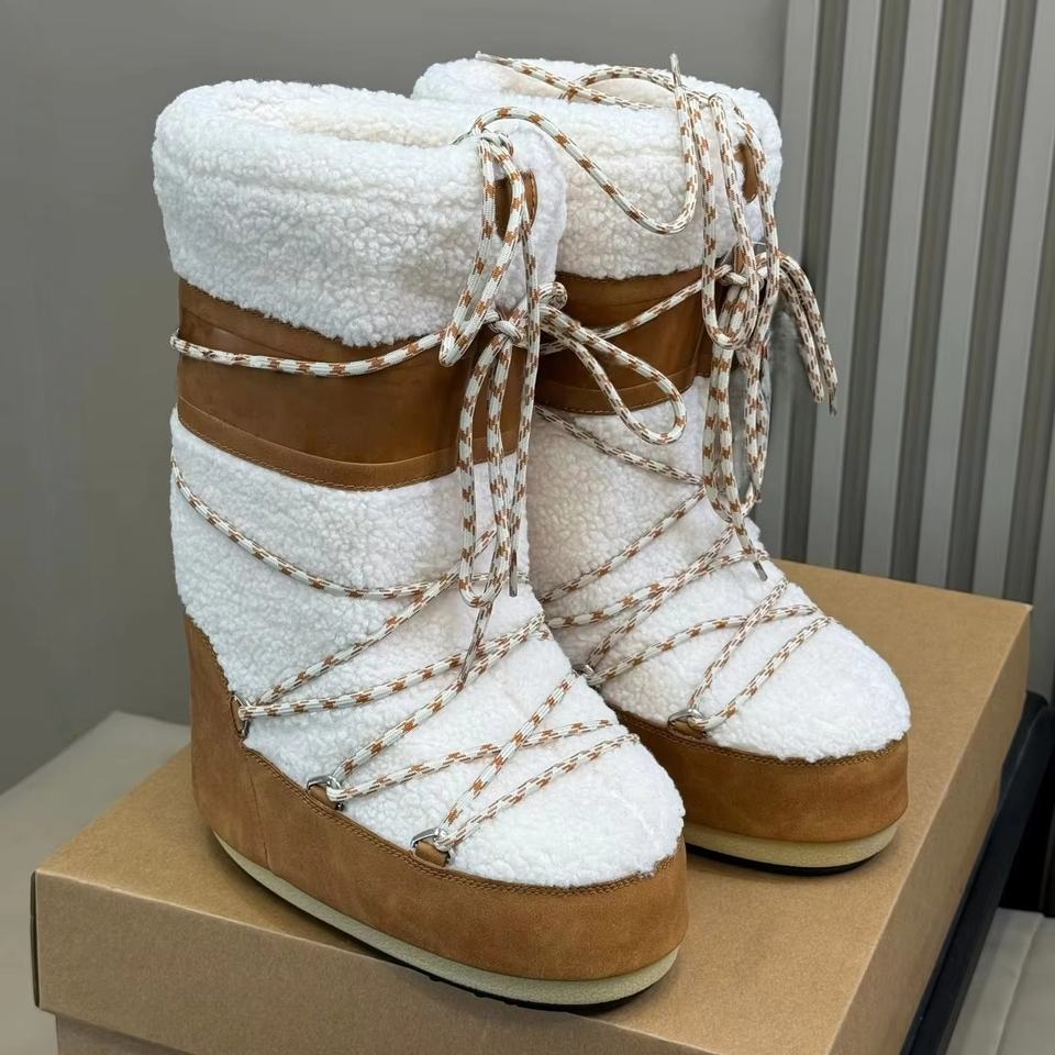 Dropshipping Original High Quality Moon Series Women's Lace Up Brown Knee High Wool Lined Fleece Thickened Outdoor Snow Boots