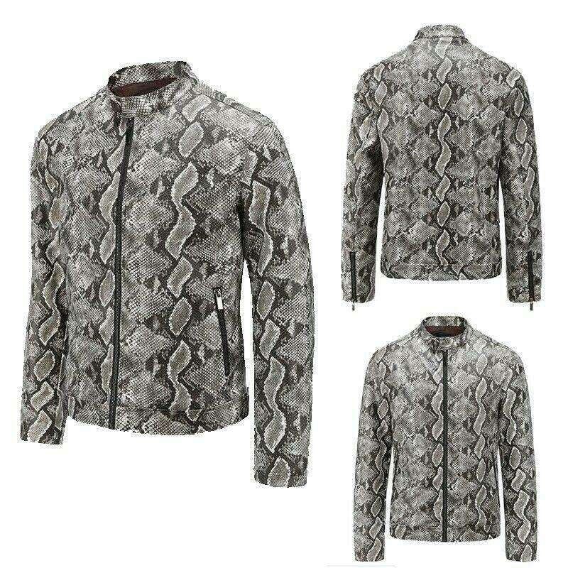 Dropshipping Premium High Quality Casual Trendy Mens Outerwear Fashion Designer Look Men Snake Print Leather Winter Jacket