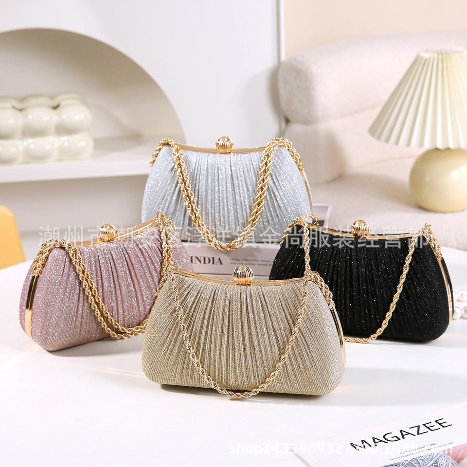Dropshipping Shopify 2025 New Shiny Pleated Evening Bag Handbag Women Qipao Match Bride Chain Square Purse