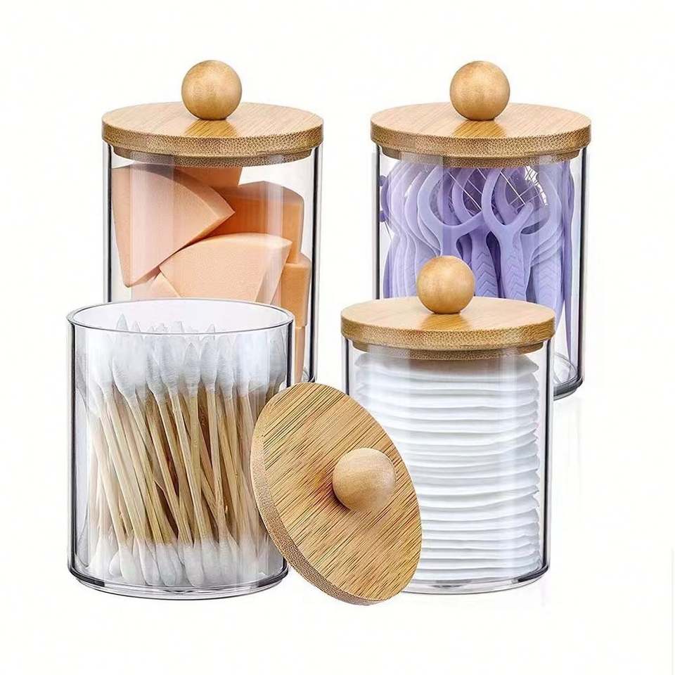 Dropshipping Shopify Holder Dispenser for Cotton Swabs Balls Cotton Pads Floss Picks Small Clear Plastic Canister