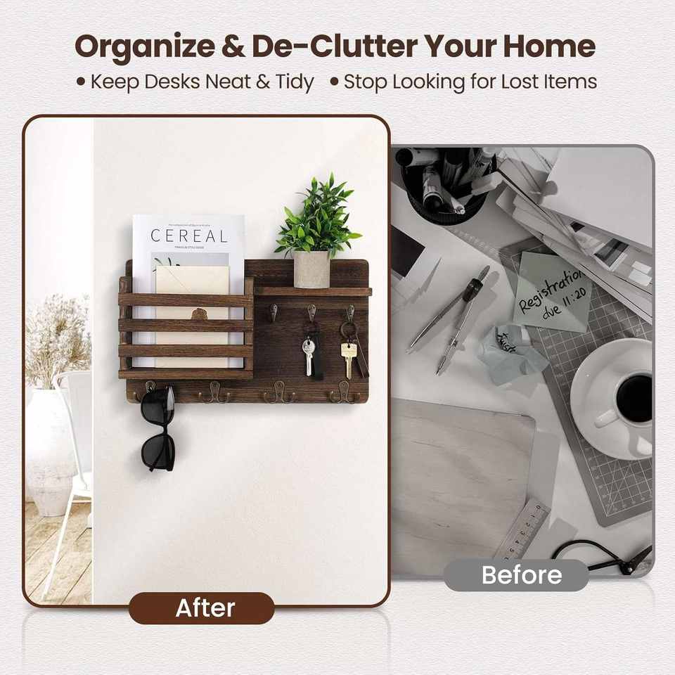Dropshipping Shopify Mail Holder for Wall Mail Organizer with Key Hooks Floating Shelf and Flush Mount Hardware