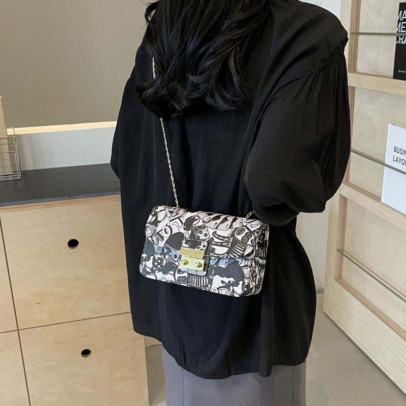 Dropshipping Shopify New Fashionable Printed square Bag, Graffiti Women's Chain Purse with Lock Clasp Crossbody Shoulder Bag