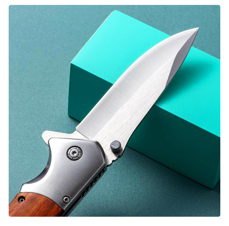 Dropshipping Shopify Outdoor Folding Knife High Hardness 58HRC Stainless Steel Survival EDC Pocket Tool With Wood Handle