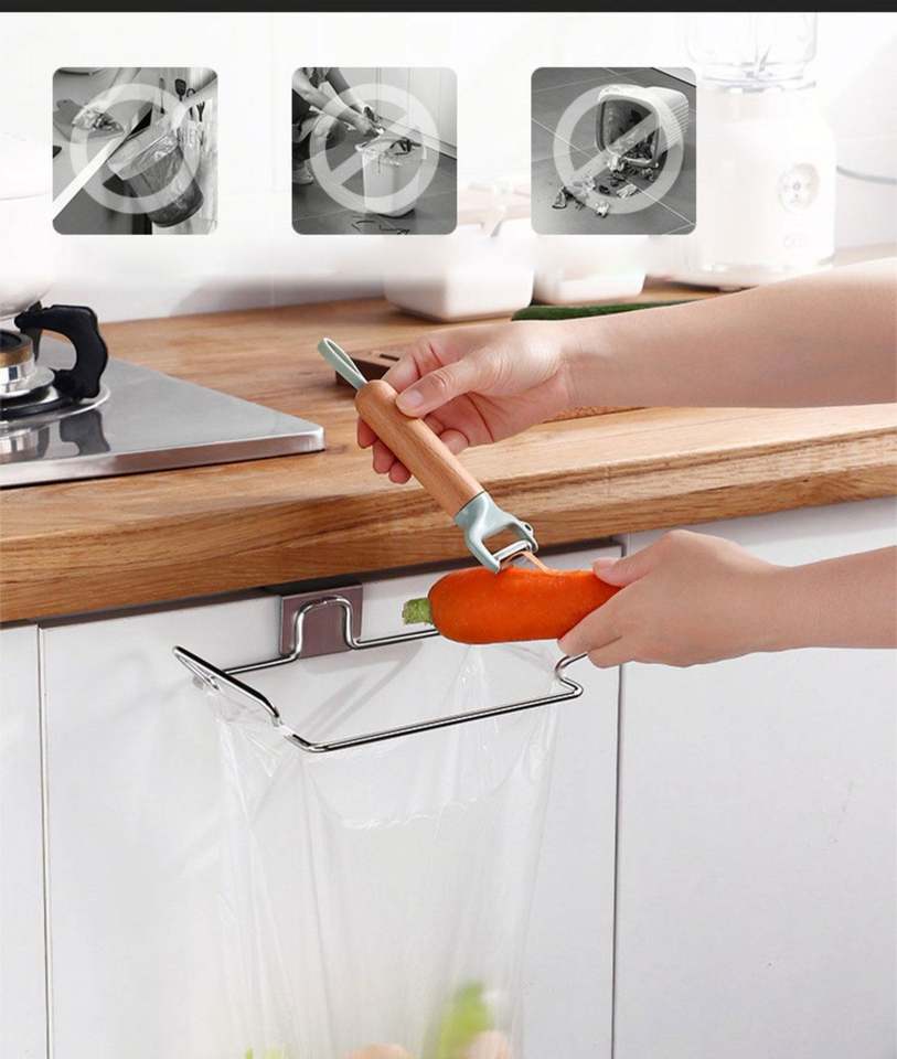 Dropshipping Shopify Over the Cabinet Metal Wire Small Garbage Container, Trash Bag Holder Rack for Kitchen, Pantry, Garage