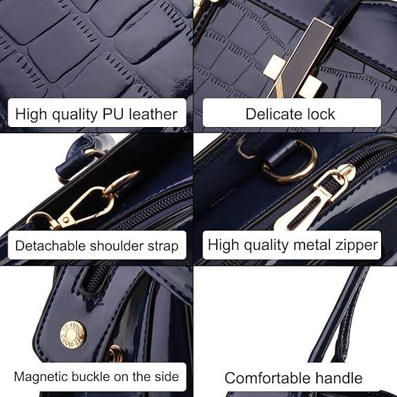 Dropshipping Shopify Shiny Patent Leather Handbag for Women Purse Crocodile Pattern Top-Handle Satchel Ladies Shoulder Bag Tote
